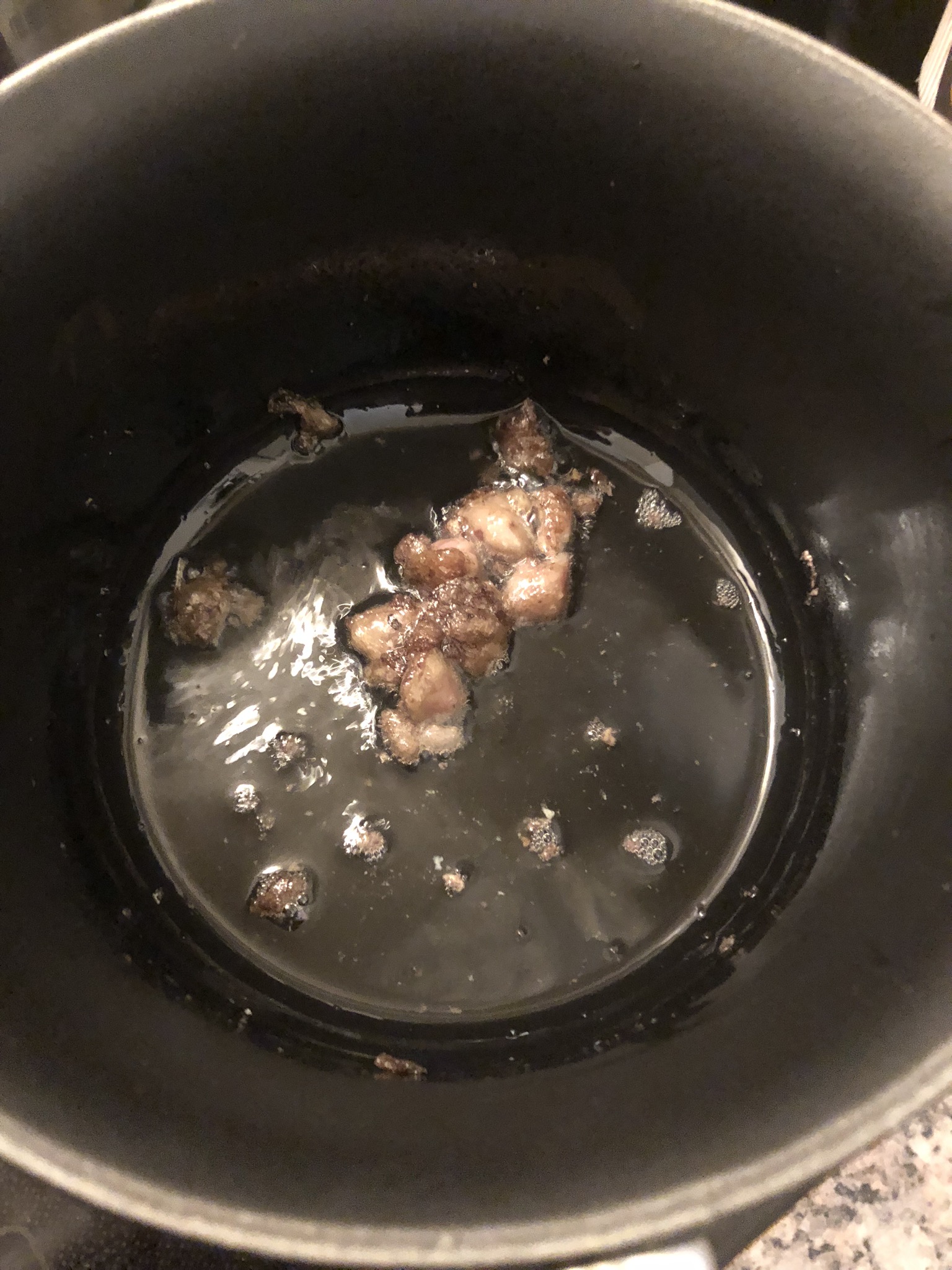• in einem Topf bei kleiner Hitze das Knochenmark auslassen. Wir benötigen nur das Fett des Knochenmarks.  Den Rest kann man sehr gut auf frisches Brot mit etwas Salz und Pfeffer servieren 😉